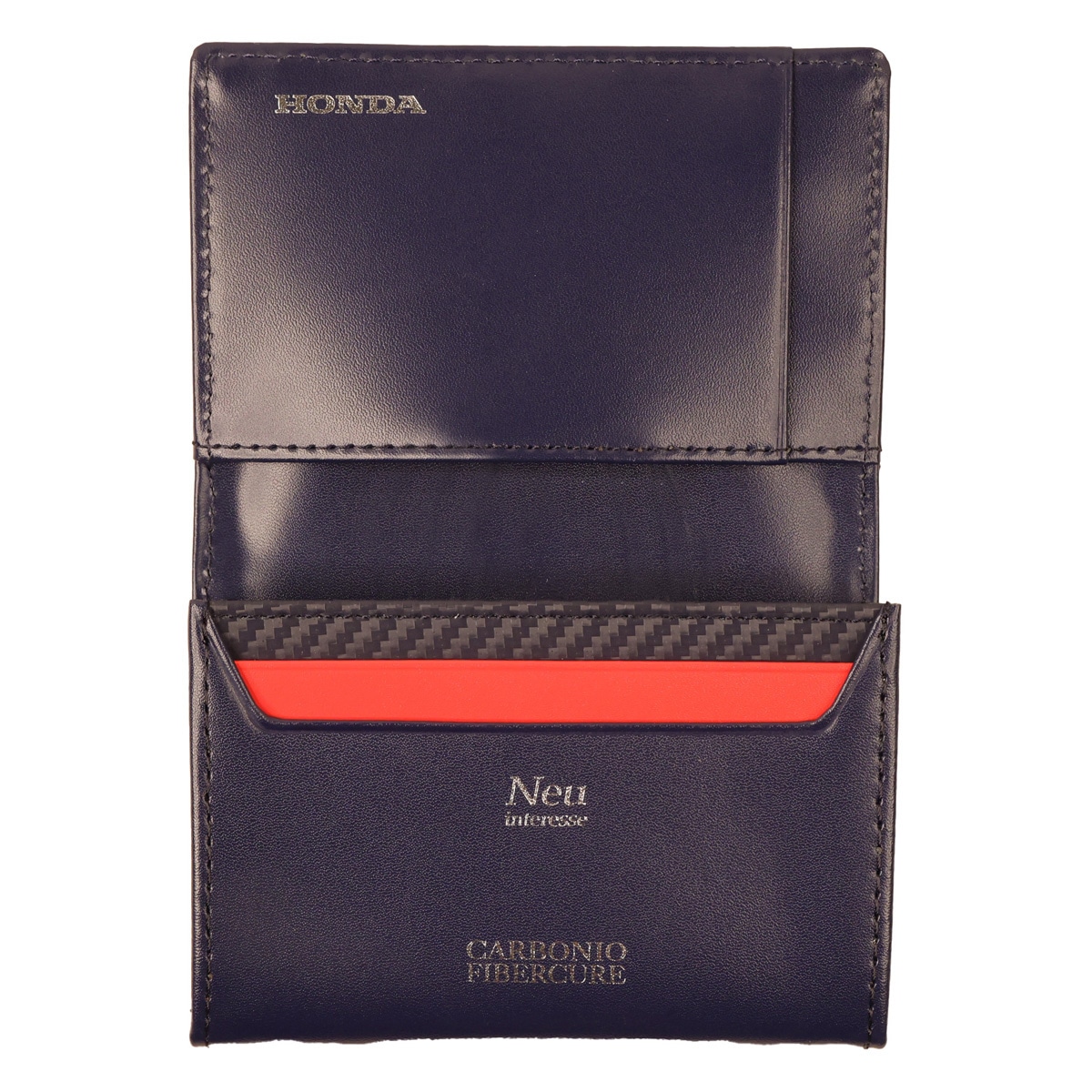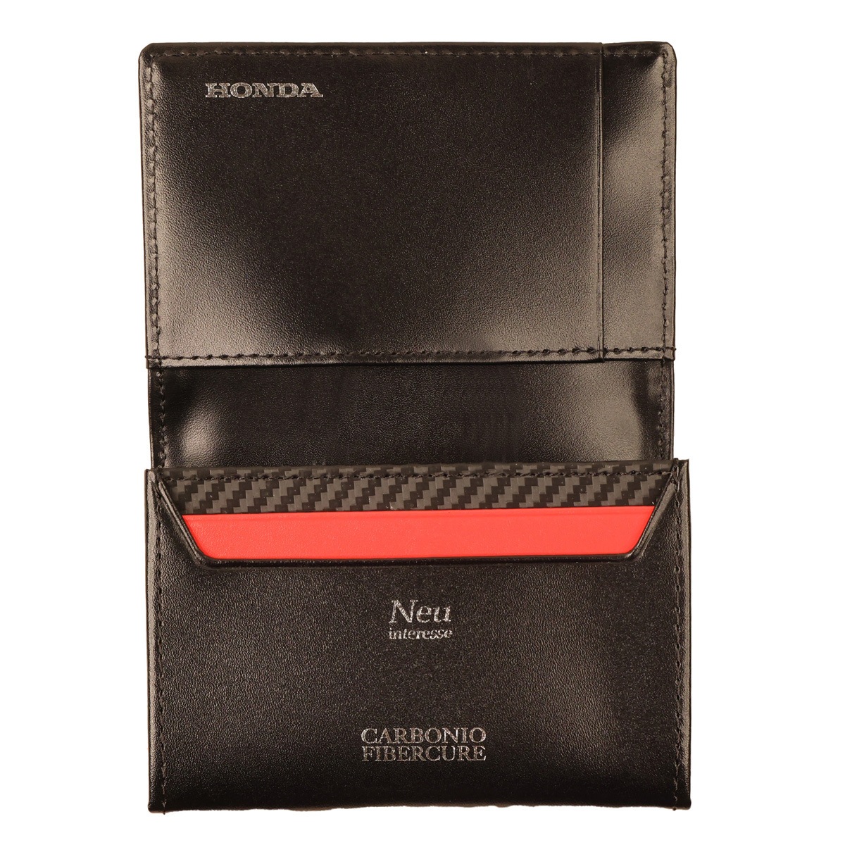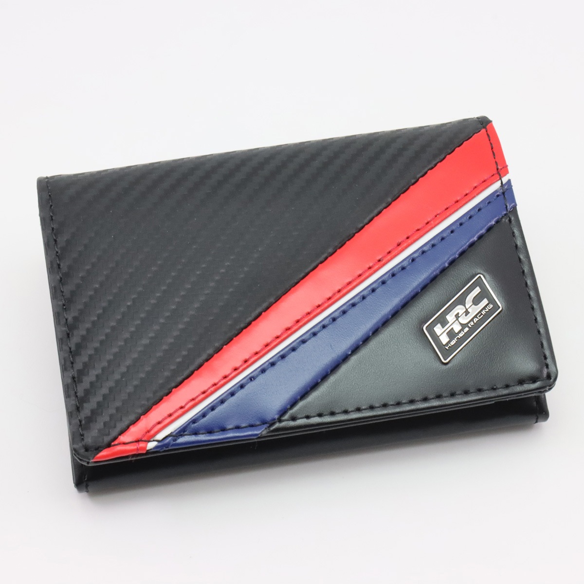 Hondaのモータースポーツ活動を象徴するHRCロゴを使用した公認ライセンスグッズ。ノイインテレッセのアイテムを通して、レースに情熱を注ぐHondaの世界観を表現。HRCの象徴的なトリコロールカラーをモチーフにし、ノイインテレッセの代表的な素材である、カーボンパターンレザーをコンビネーションに使用したコラボレーションモデルです。