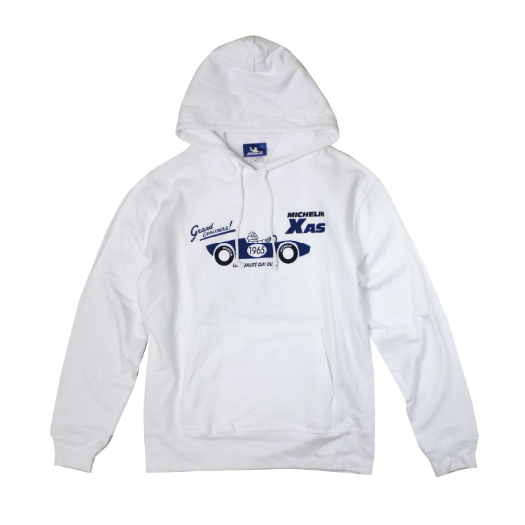 1965年に登場したミシュランのXASタイヤを象徴するデザインが特徴的な一着です。フロントには、ミシュランのビバンダムが乗るレトロなレースカーとともに、「Grand Concours」と「1965」の文字があり、ミシュランの歴史とレース文化を感じさせます。ホワイトの清潔感あふれるカラーは、どんなコーディネートにも合わせやすく、シンプルでありながらインパクトのあるデザインです。