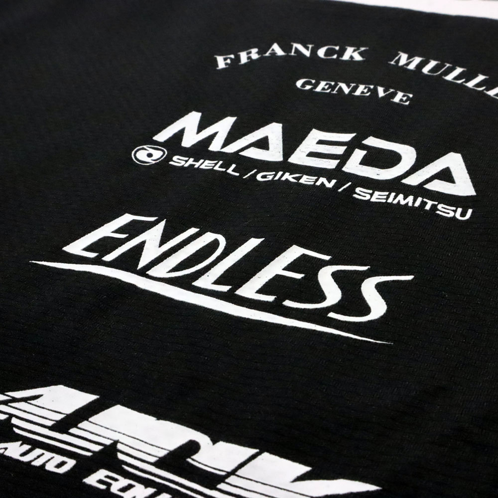 背面に和柄のデザインを取り入れ、全体にパーソナルロゴやスポンサーロゴがプリントされたウェアです。 ストレッチが効いた素材で、動きやすく快適に着用できます。
