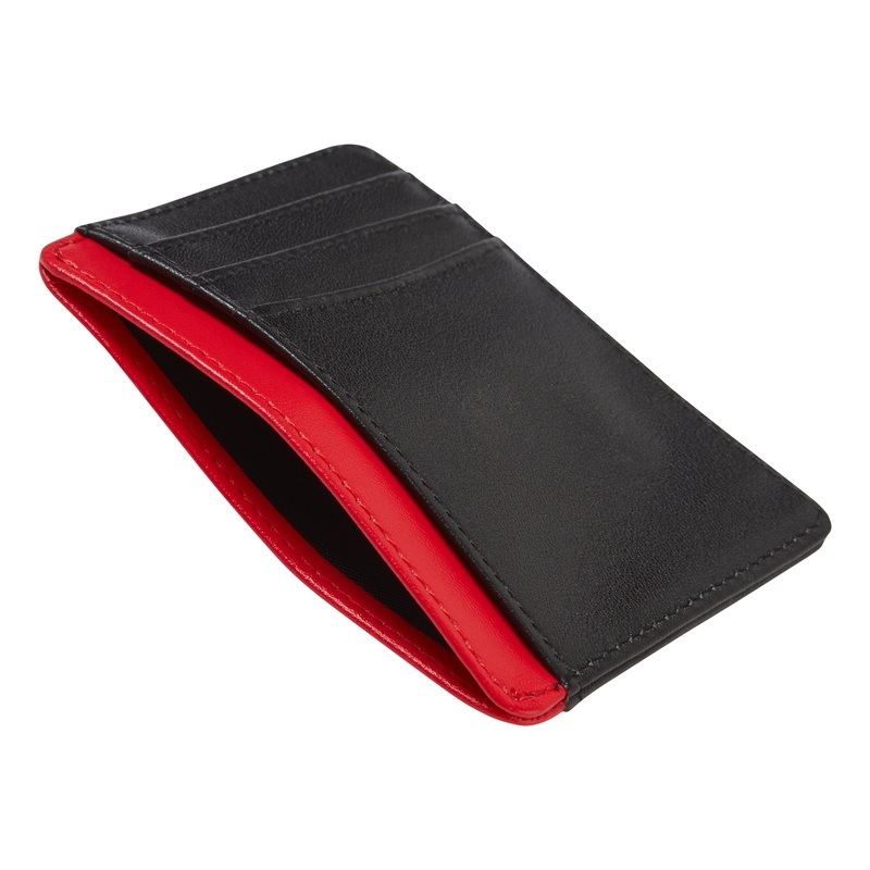 TOYOTA GAZOO Racingカラーの赤黒で構成され、エンボス加工でロゴが入っている高級感のある細身のレザーカードホルダー。 最大9枚のカードを収納でき、少量であれば紙幣や領収書なども収納できます。 化粧箱入りでプレゼントにも最適
