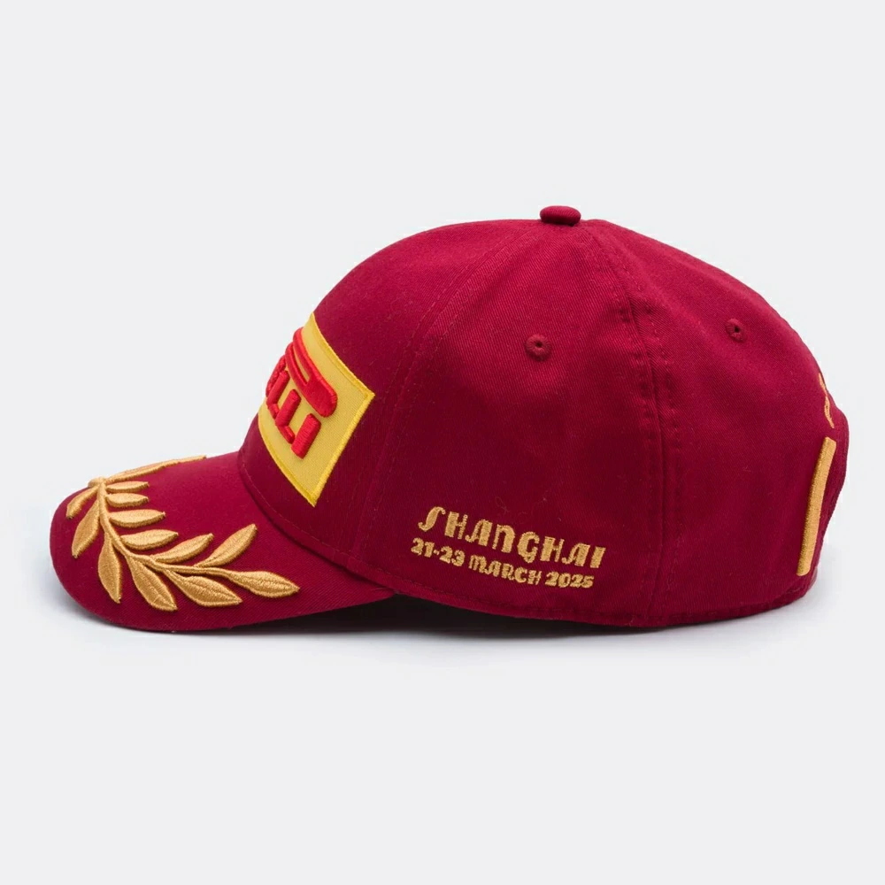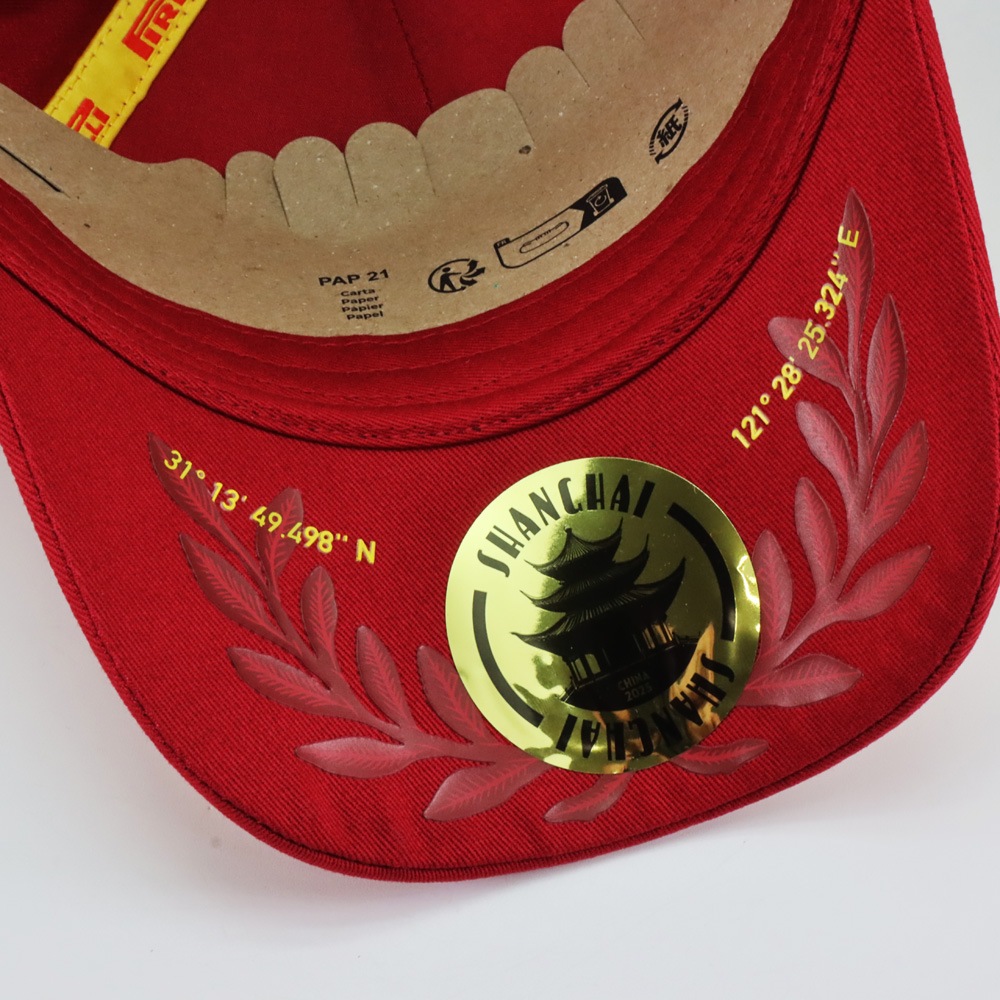 自身初のポール・トゥ・ウィンを達成した中国GPでピアストリが被った1stポディウムキャップのレプリカモデル。 中国の伝統色であるエンジ色のキャップ。 右側に1stロゴ、左側には開催地と開催日が刺繍されており、ブリム裏はサーキットの座標がプリントされています。