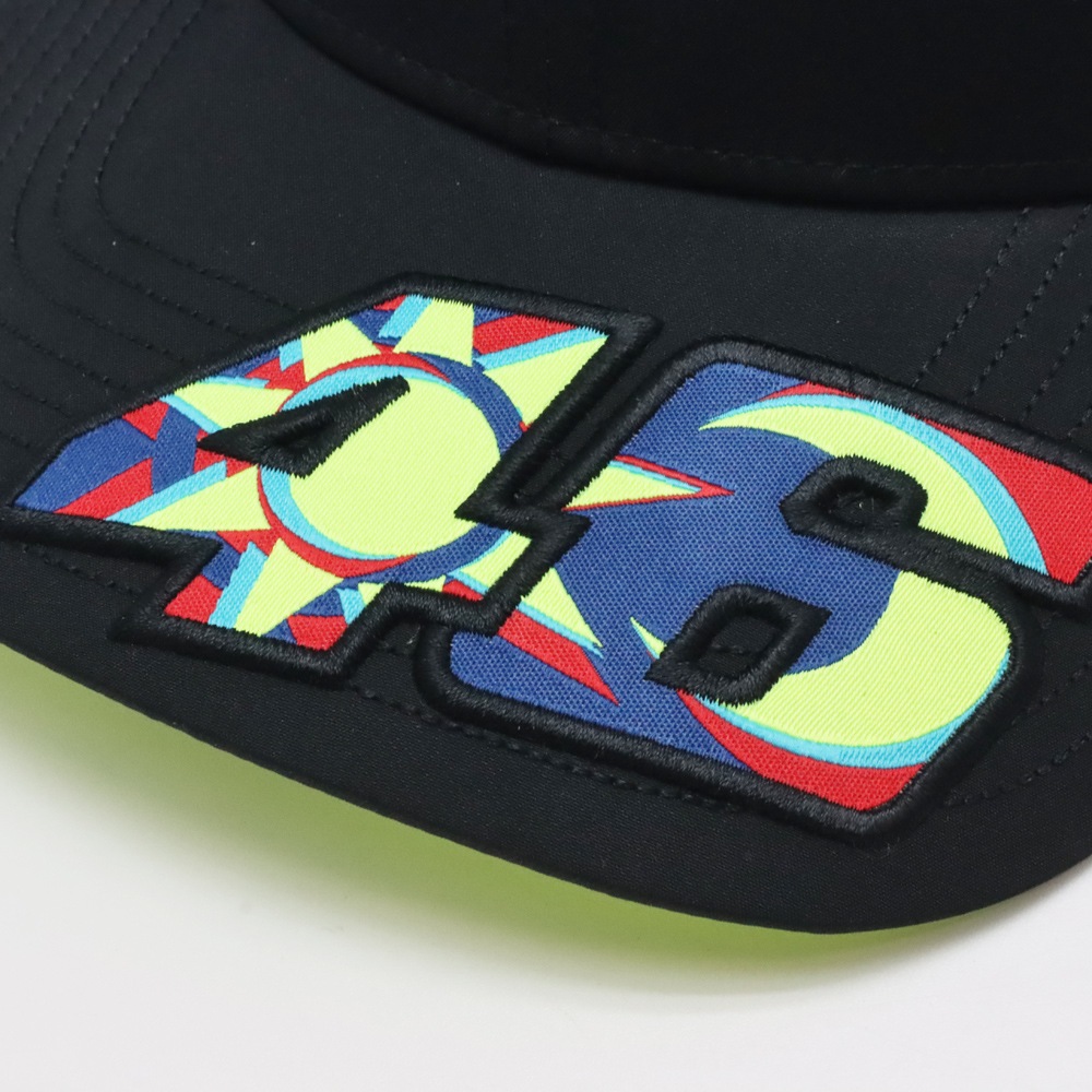 バイザーに46のパッチが付いています。