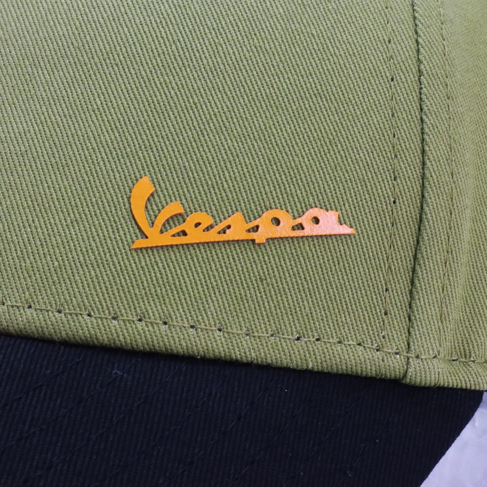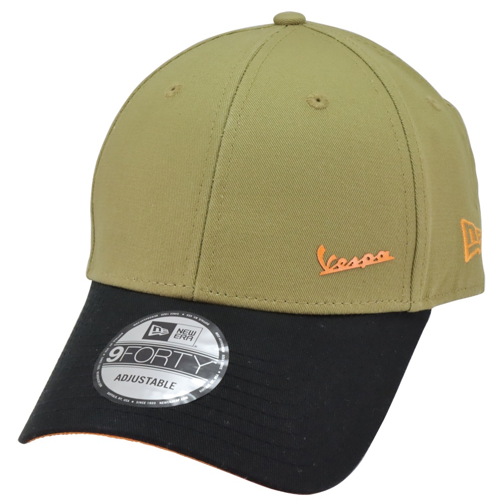 世界で最も有名なスクーターメーカーの1つ、ベスパのNEW ERA製キャップです。 ダークカーキのクラウンにブラックのつば、裏面は鮮やかなオレンジを採用しコントラストが効いたカラーリングが特徴です。 Vespaロゴはプリントでデザインされています。