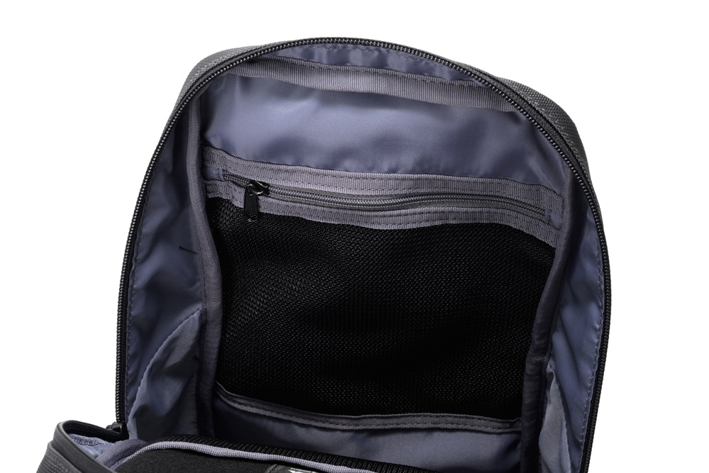 内側仕様(メインコンパートメント内):ファスナー付きメッシュポケット×1、オープンポケット×2(内1つはメッシュ素材)